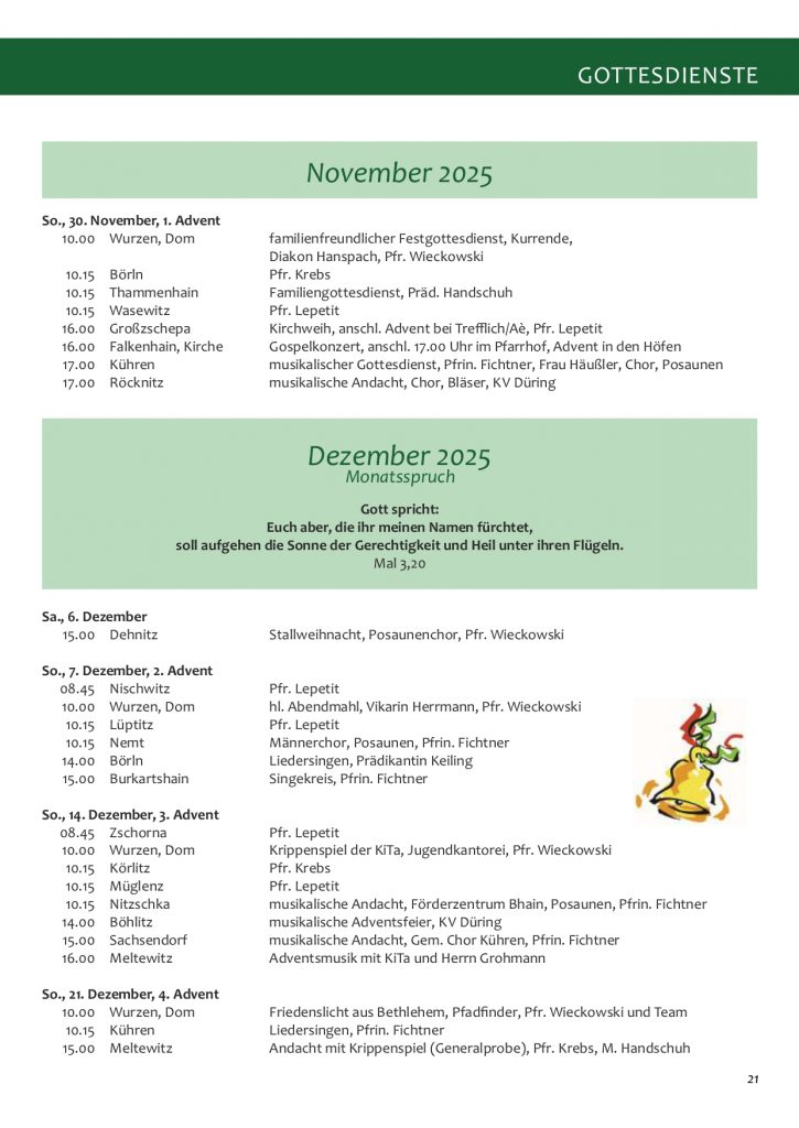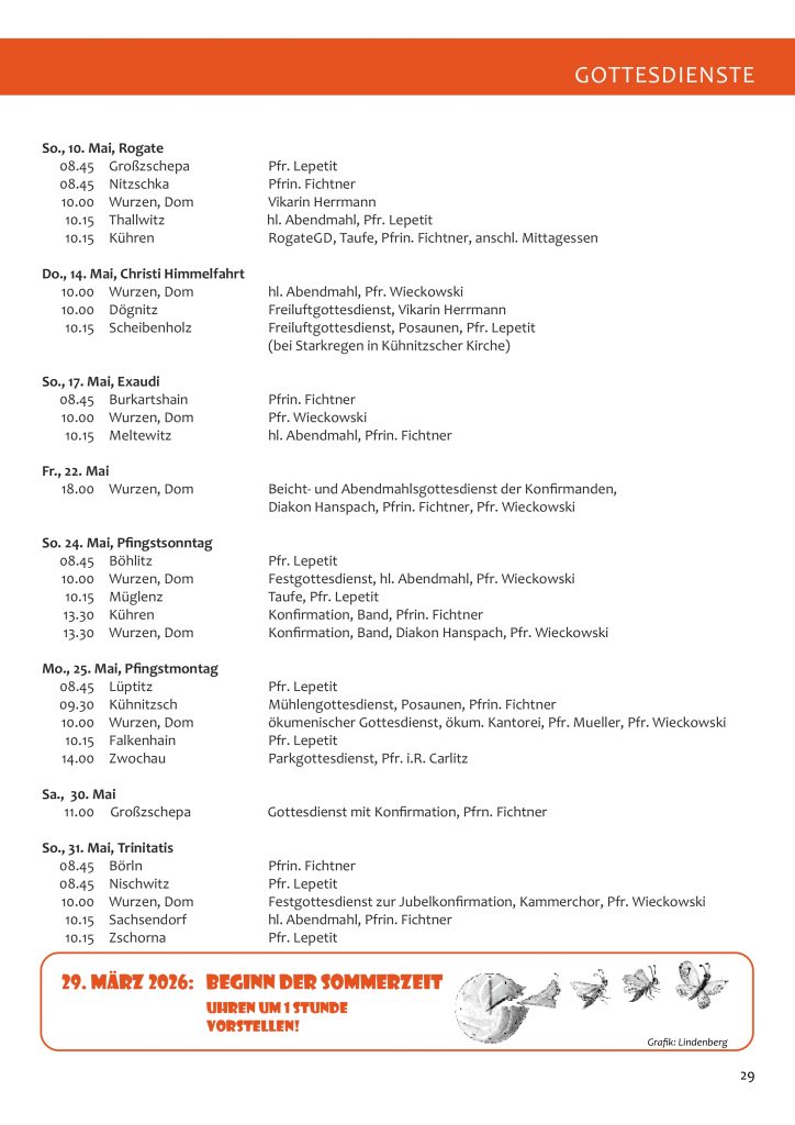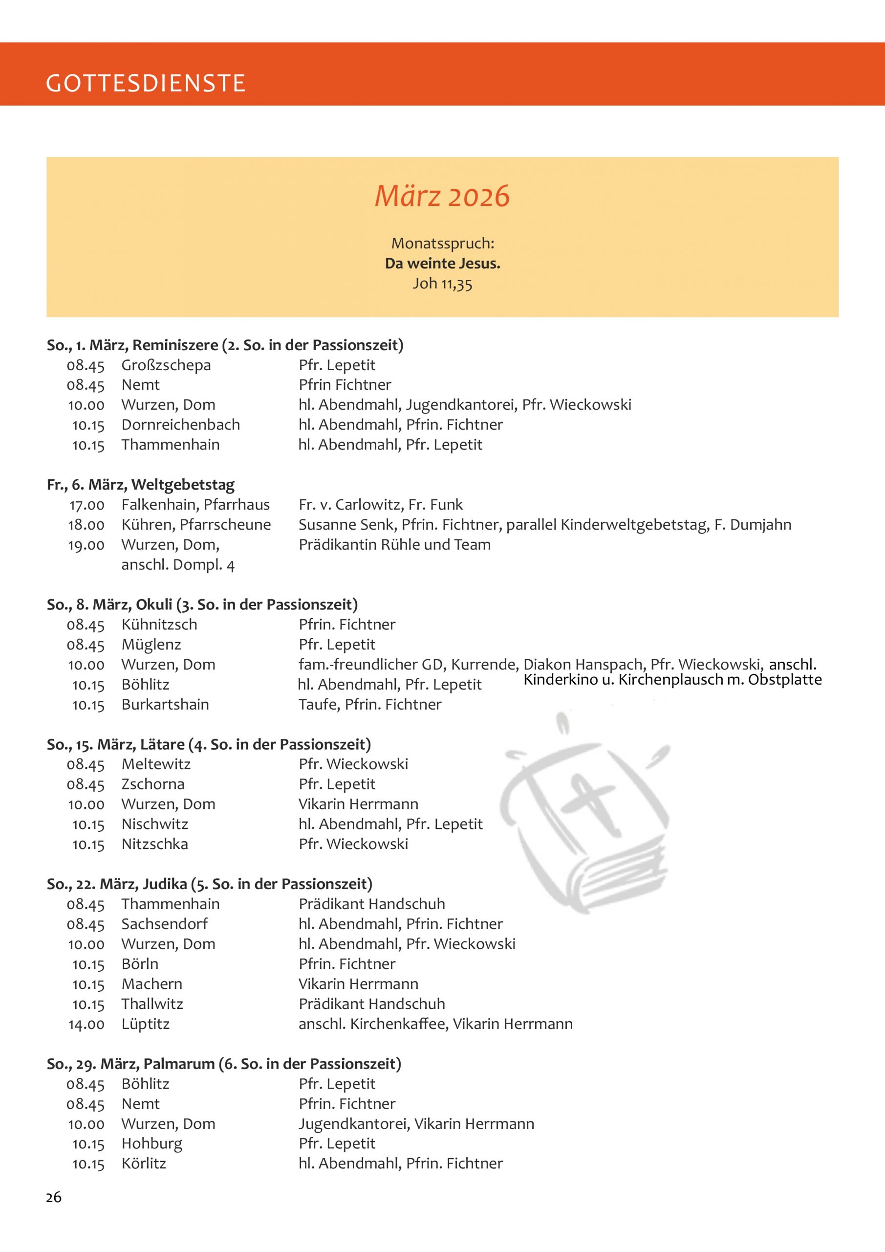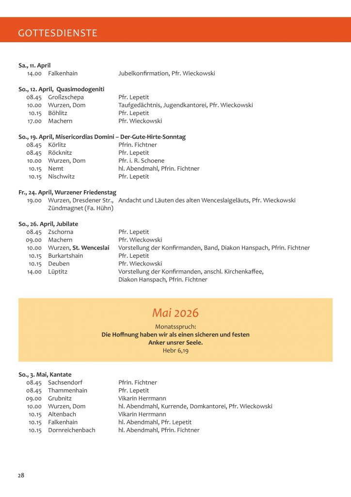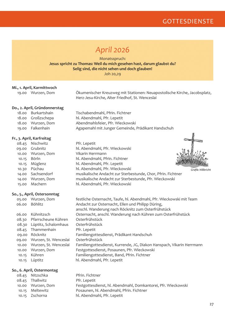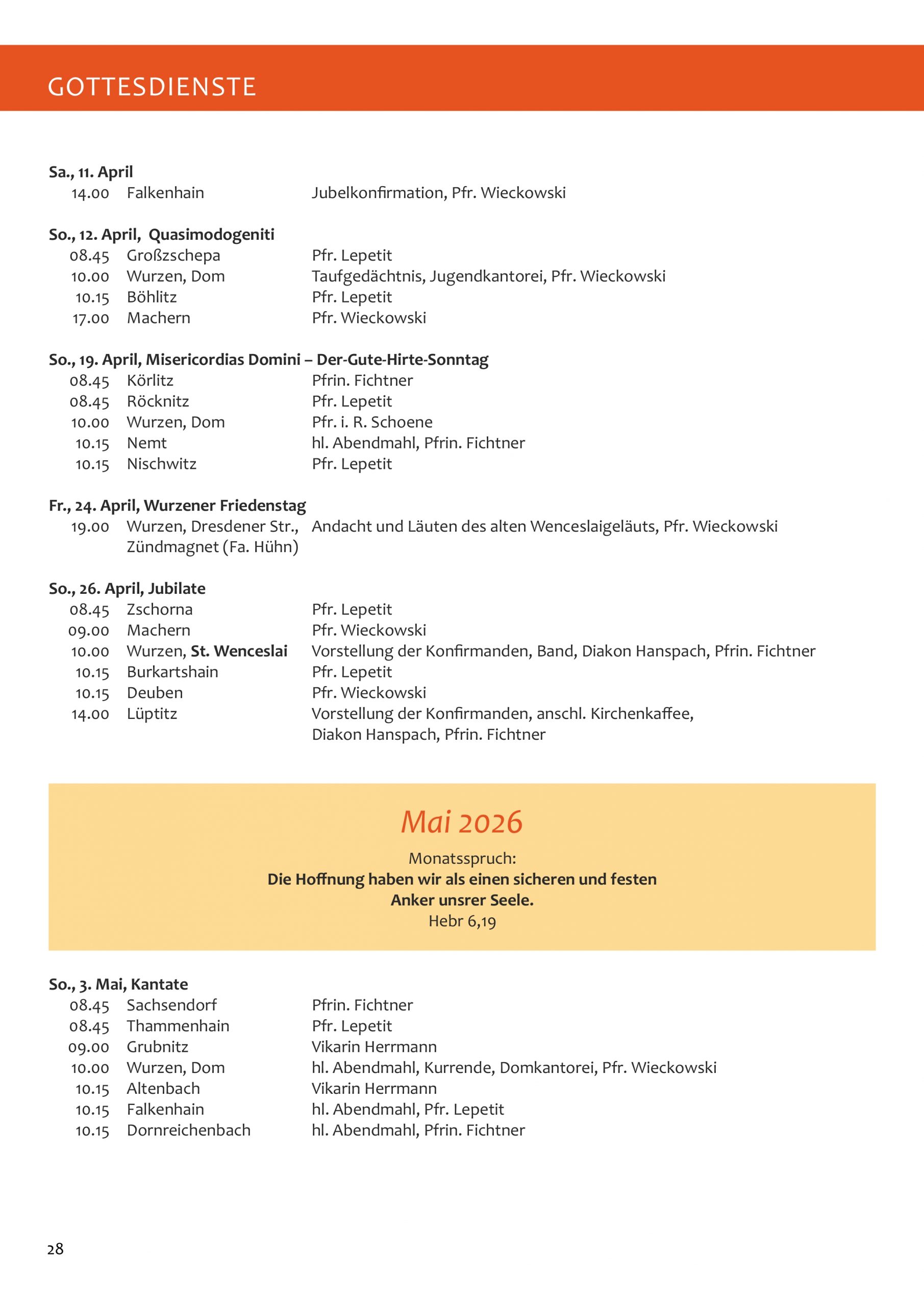 Termine der Gottesdienste finden Sie auch in den Gemeindebriefen.