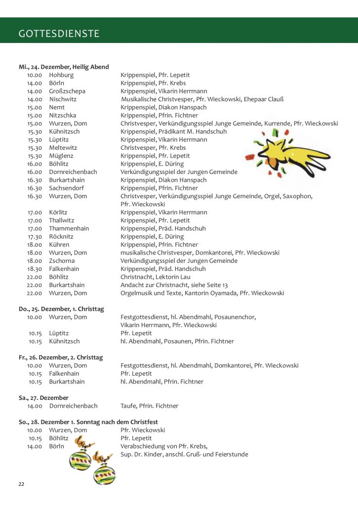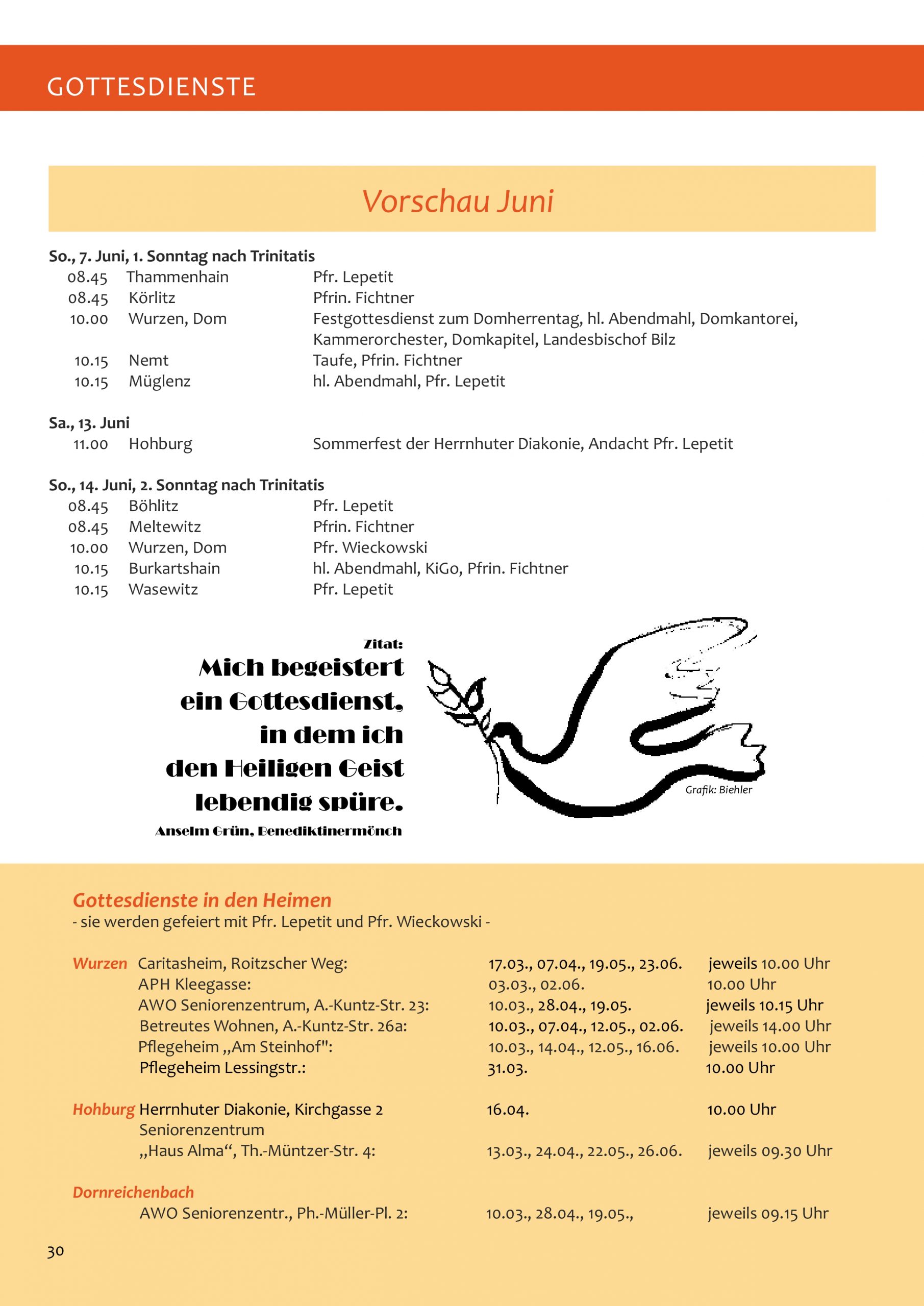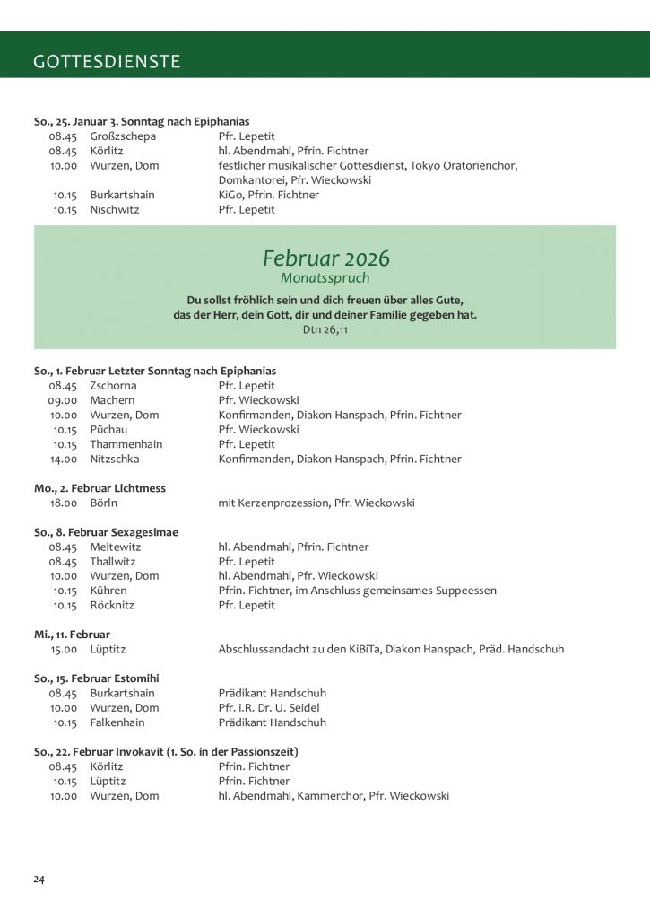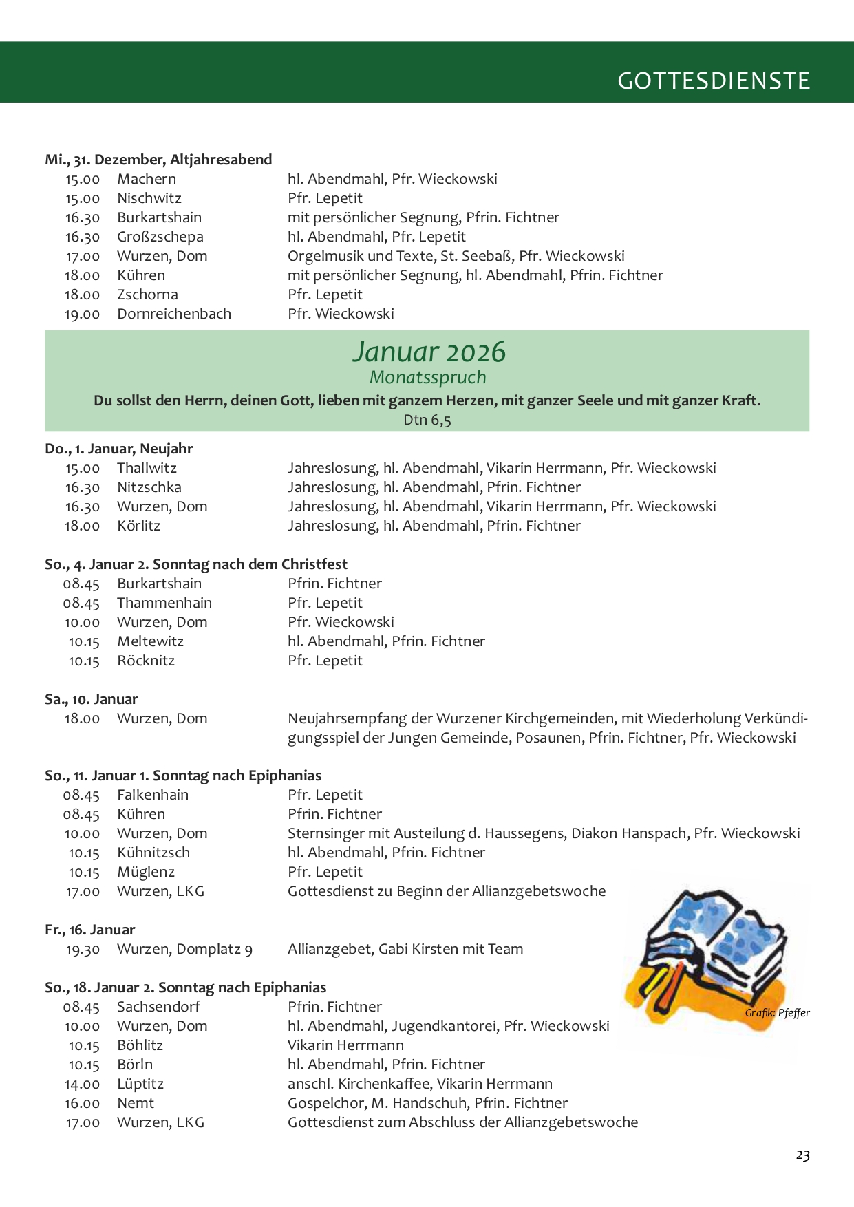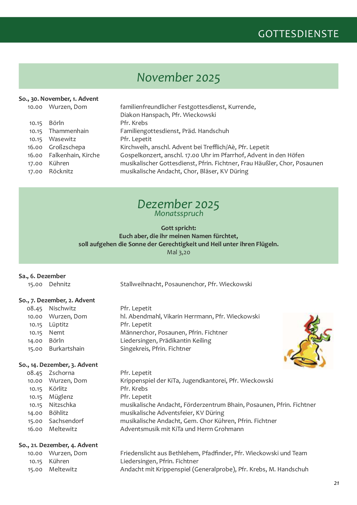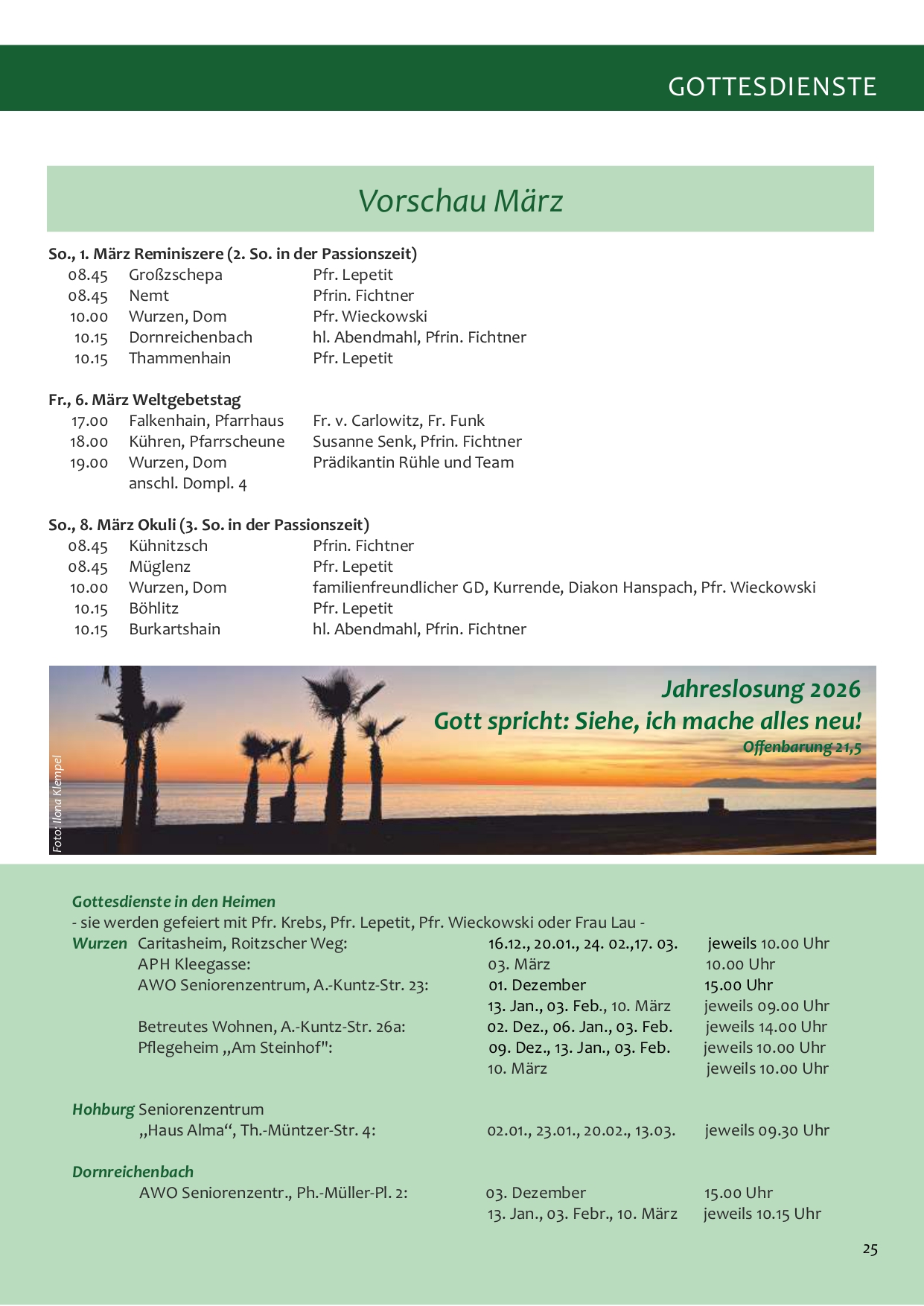 Termine der Gottesdienste finden Sie auch in den Gemeindebriefen.