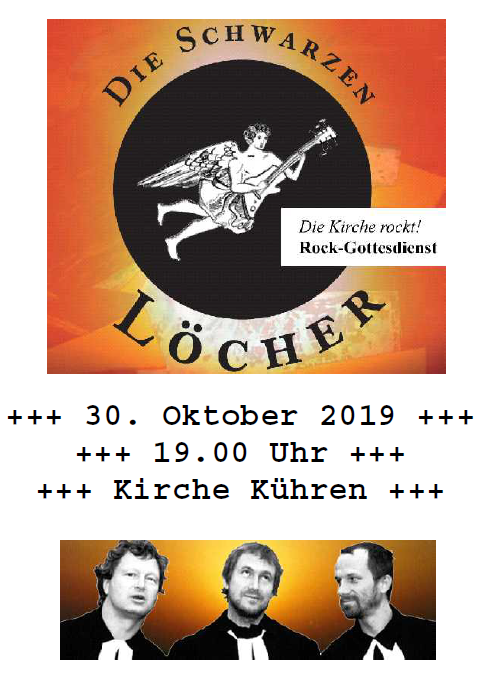 Kirche ROCKT! 30. Oktober +++ 19 Uhr Die Schwarzen Löcher geben ein Konzert-/Rock-Gottesdienst in Kühren!